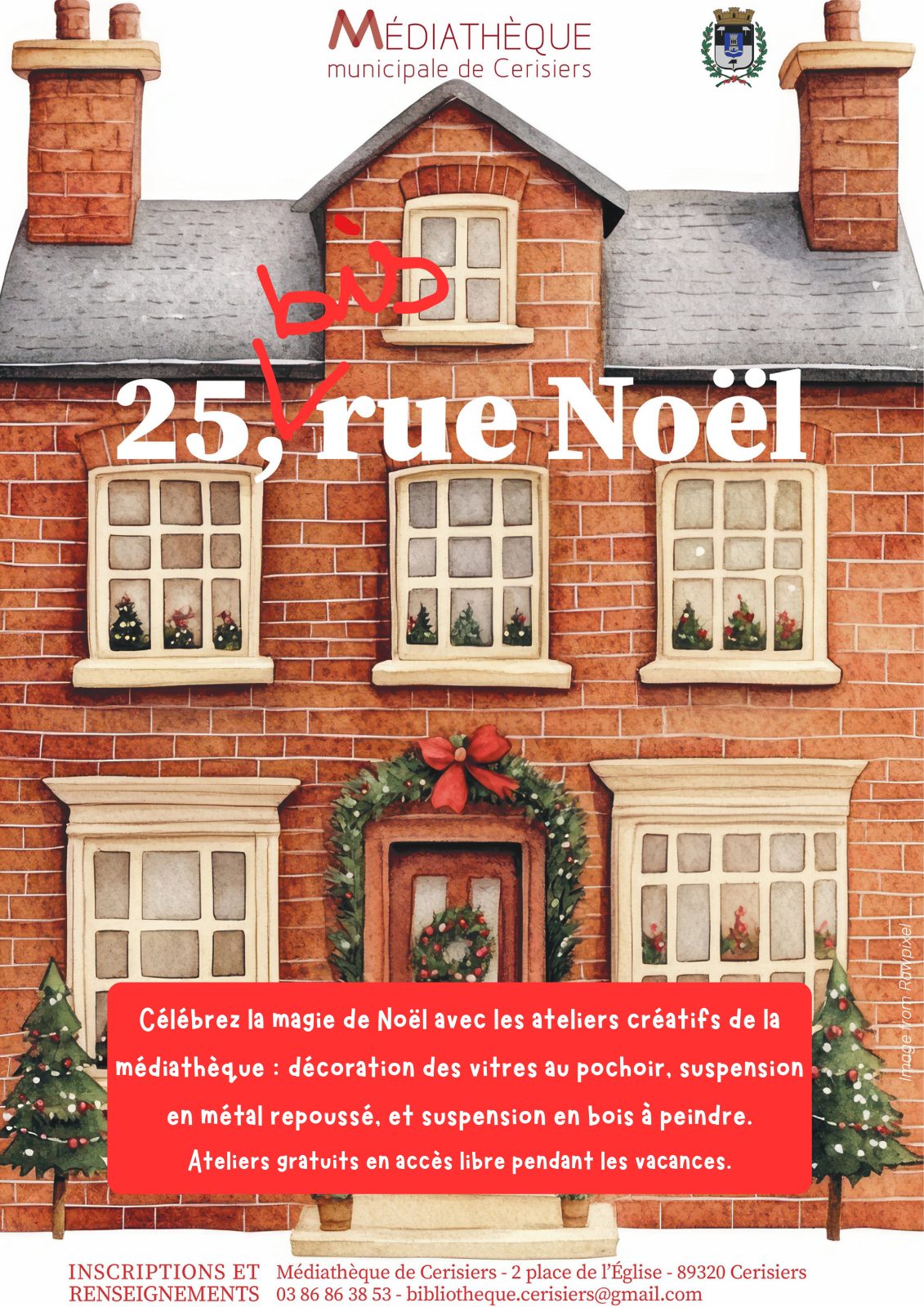 Vous êtes cordialement invités au *25, bis rue Noël* à Cerisiers pour les ateliers créatifs de Noël :