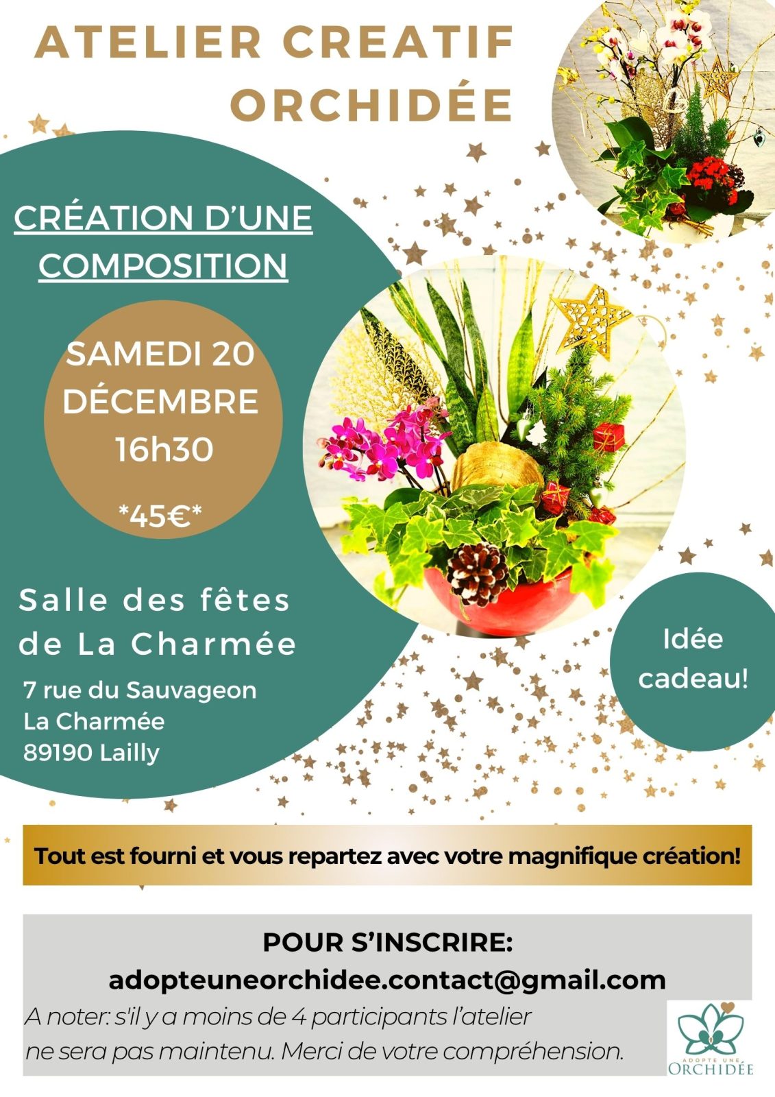 Atelier création d’une composition d’orchidée Salle des fêtes 7 Rue du Sauvageon 89190 LAILLY Voir mon itinéraire