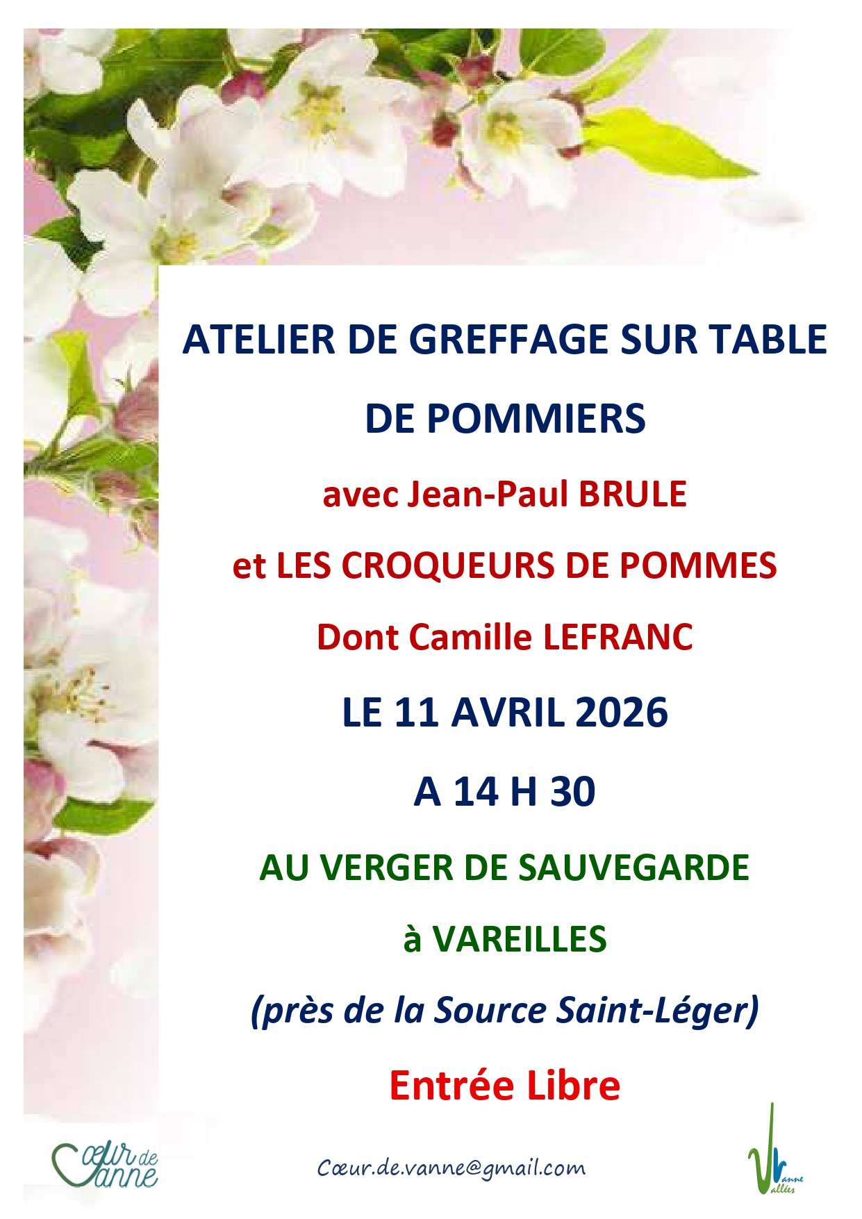 Atelier de greffage sur table de pommiers Verger sauvage Source de Saint-Léger Chemin aux Vaches 89320 VAREILLES Voir mon itinéraire