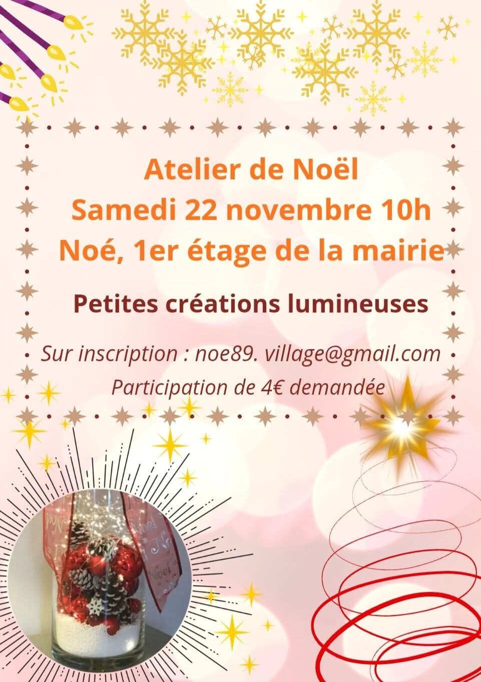 Atelier de Noël Premier étage de la mairie 43-41 Rue des Hâtes 89320 NOE Voir mon itinéraire