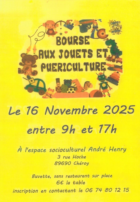 Bourse aux jouets Espace socioculturel André Henri 27 Place du Général de Gaulle 89260 CHÉROY Voir mon itinéraire