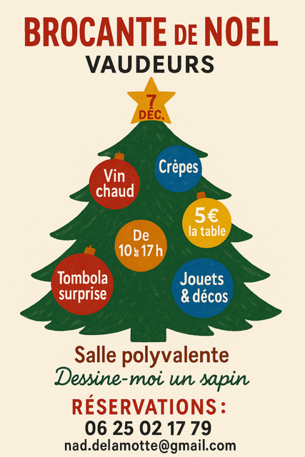 Brocante de Noël Salle polyvalente Place de l'Éolienne 89320 VAUDEURS Voir mon itinéraire