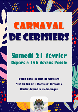Carnaval École 1 route de Dixmont 89320 CERISIERS Voir mon itinéraire