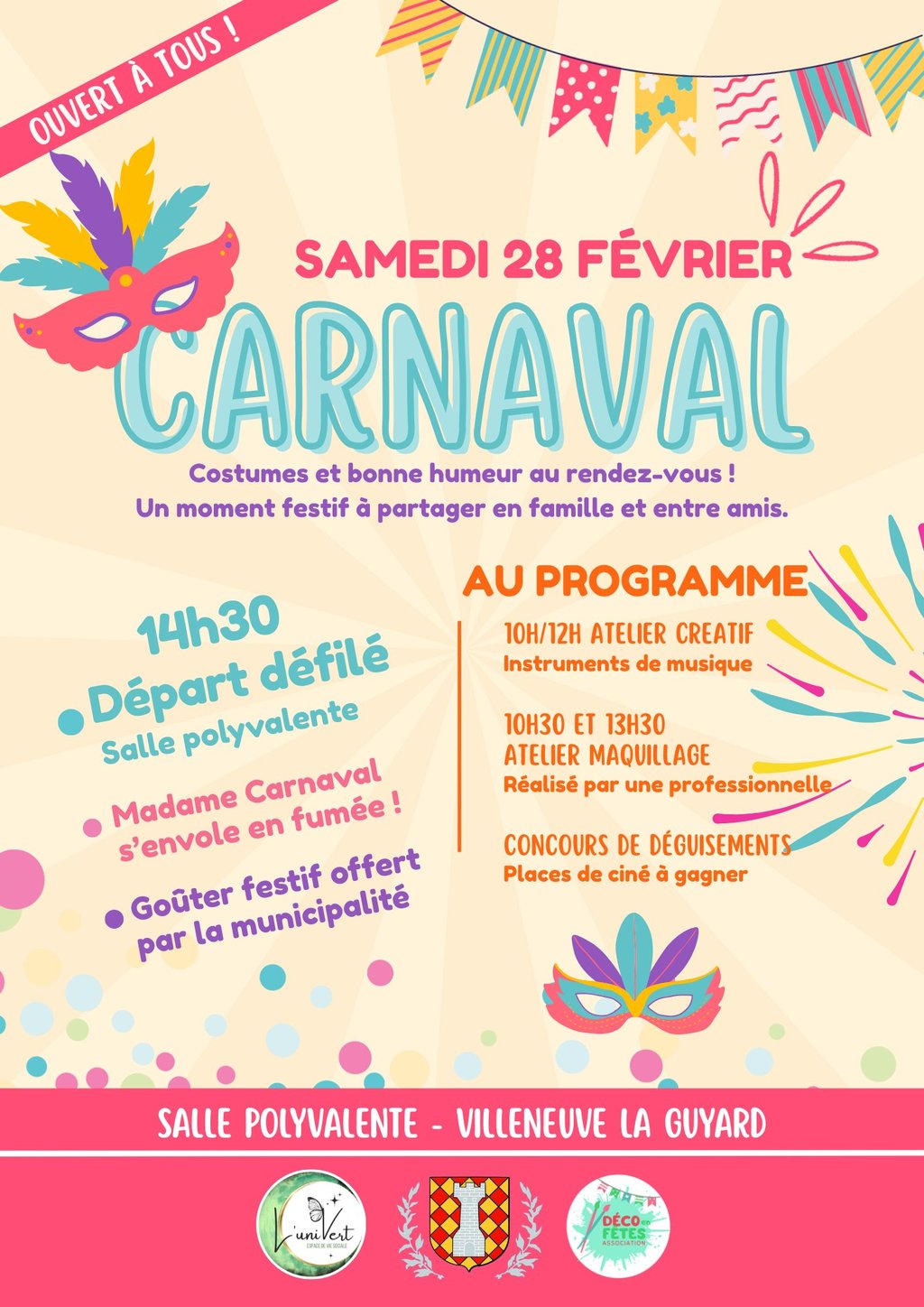 Carnaval Salle polyvalente 2 Rue Antoine de Saint-Exupéry 89340 VILLENEUVE-LA-GUYARD Voir mon itinéraire