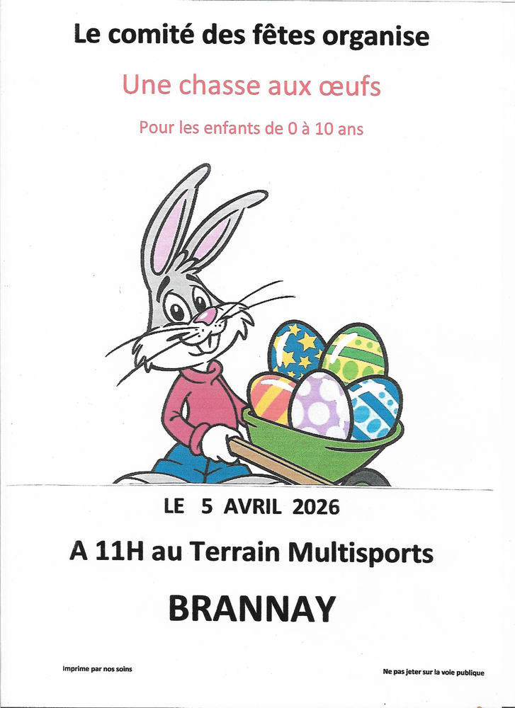 Le comité des fêtes de Brannay organise une chass aux œufs pour les enfants de moins de 10 ans.