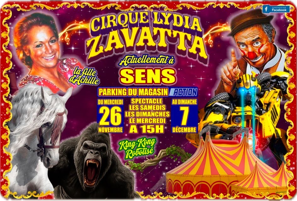 Cirque Lydia Zavatta Parking du magasin Action 14 Rue de l'Europe 89100 MAILLOT Voir mon itinéraire
