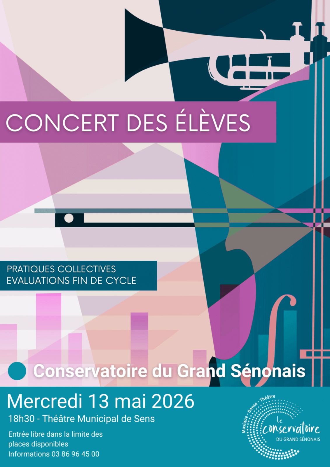 Concert des élèves Théâtre municipal 21 Boulevard des Garibaldi 89100 SENS Voir mon itinéraire