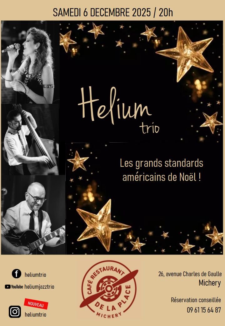 Concert de Noël par le groupe Hélium Trio. Venez écouter les grands standards américains de Noël !