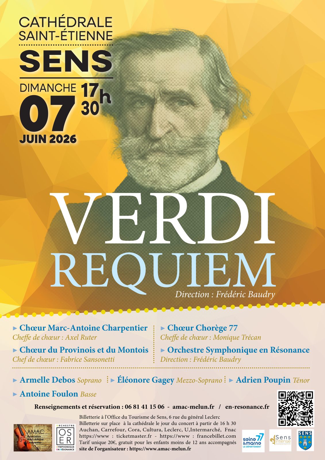 Le 7 juin 2026, sous les voûtes majestueuses de la cathédrale de Sens , l’Orchestre Symphonique en Résonance et ses chœurs interprètent le bouleversant Requiem de Verdi. Monument de ferveur et de théâtre, cette œuvre oscille entre le fracas du Dies Irae, les murmures d’une prière intime et les éclats de lumière du Sanctus. Dans ce cadre gothique grandiose, chaque note prend une dimension sacrée, portée par la puissance des voix et l’intensité des musiciens. Une expérience rare, où émotion et spiritualité s’unissent pour offrir au public un moment de beauté absolue et de recueillement vibrant.