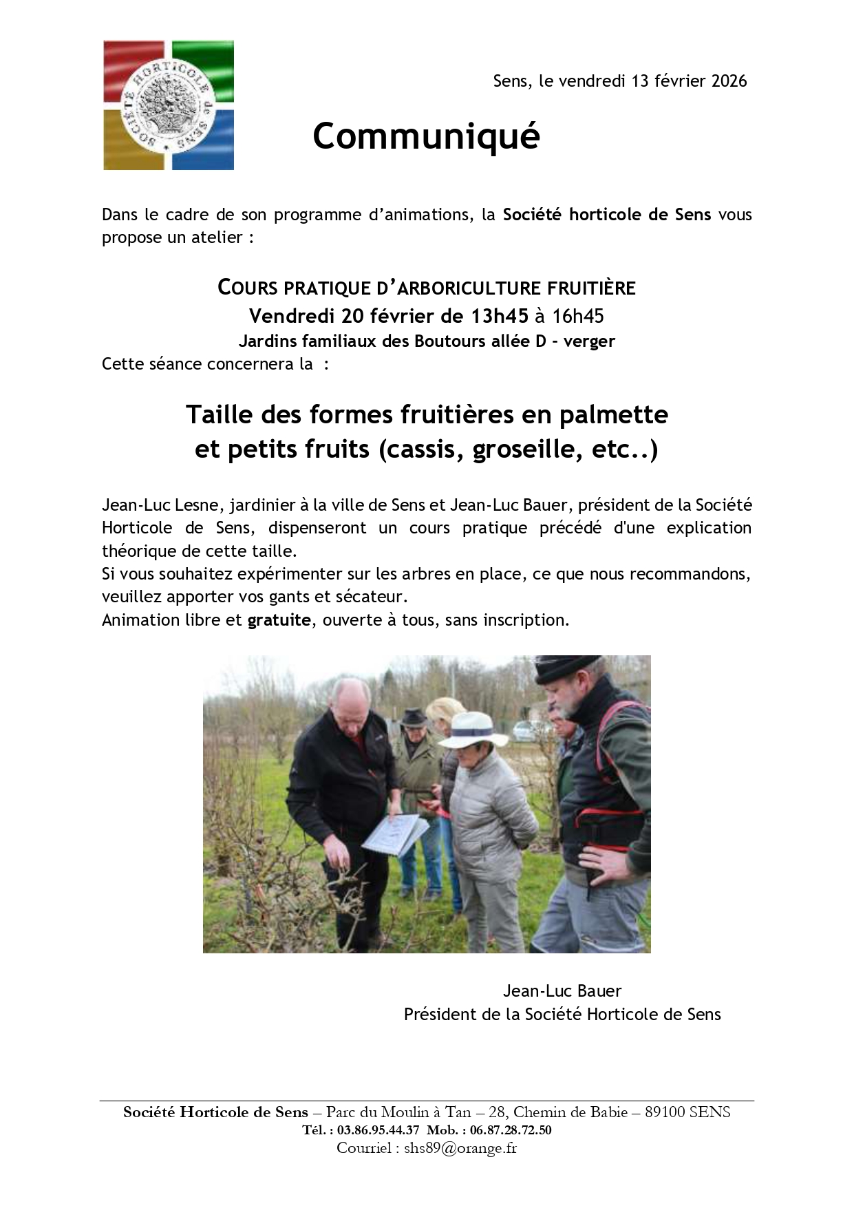 Jean-Luc Lesne, jardinier à la ville de Sens et Jean-Luc Bauer, président de la Société Horticole de Sens, dispenseront un cours pratique précédé d'une explication théorique de cette taille.