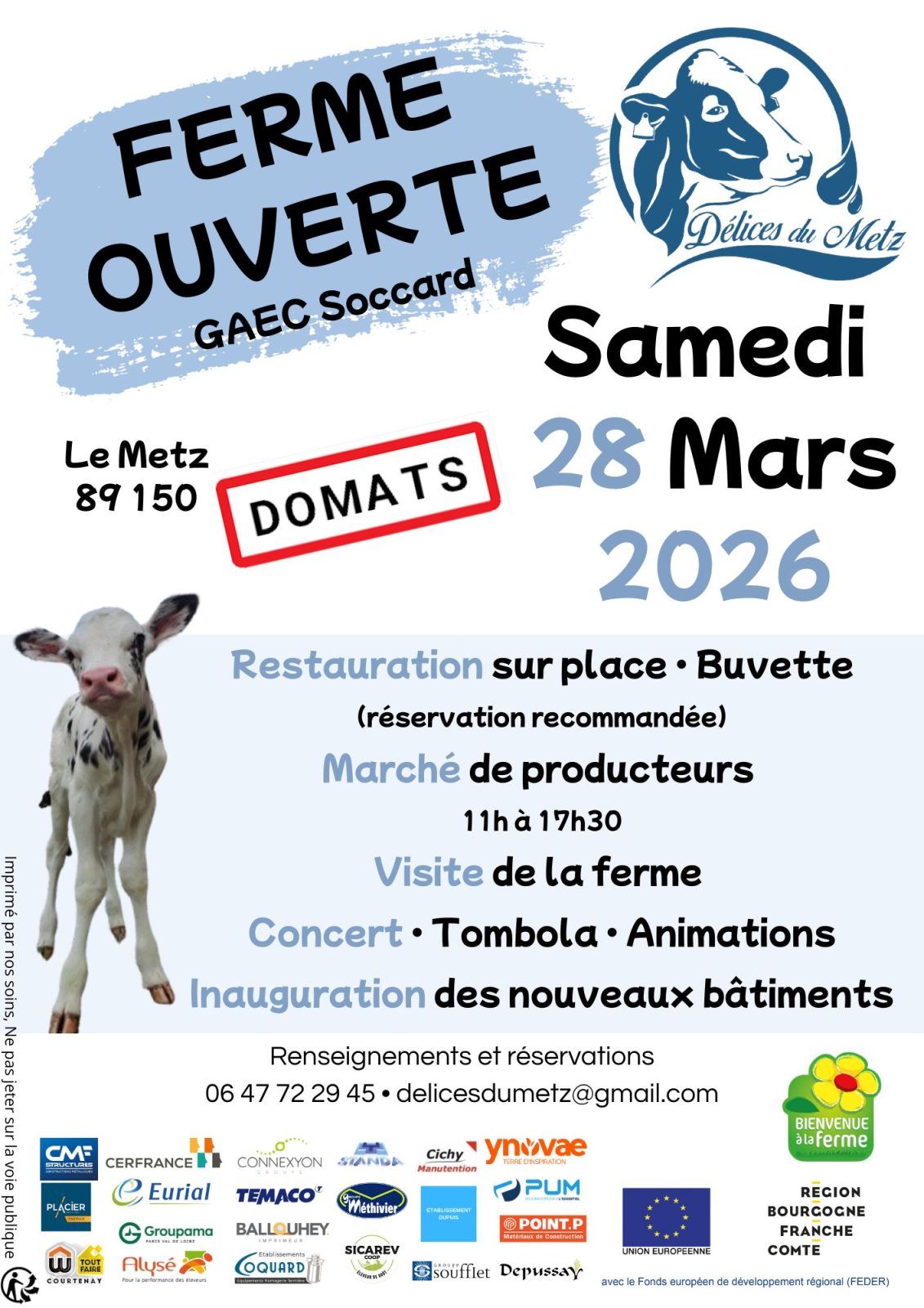 Le GAEC SOCCARD vous invite à une journée "ferme ouverte" pour célébrer l'arrivée du printemps. Restauration, visite de la ferme, marché de producteurs, concerts et animations.