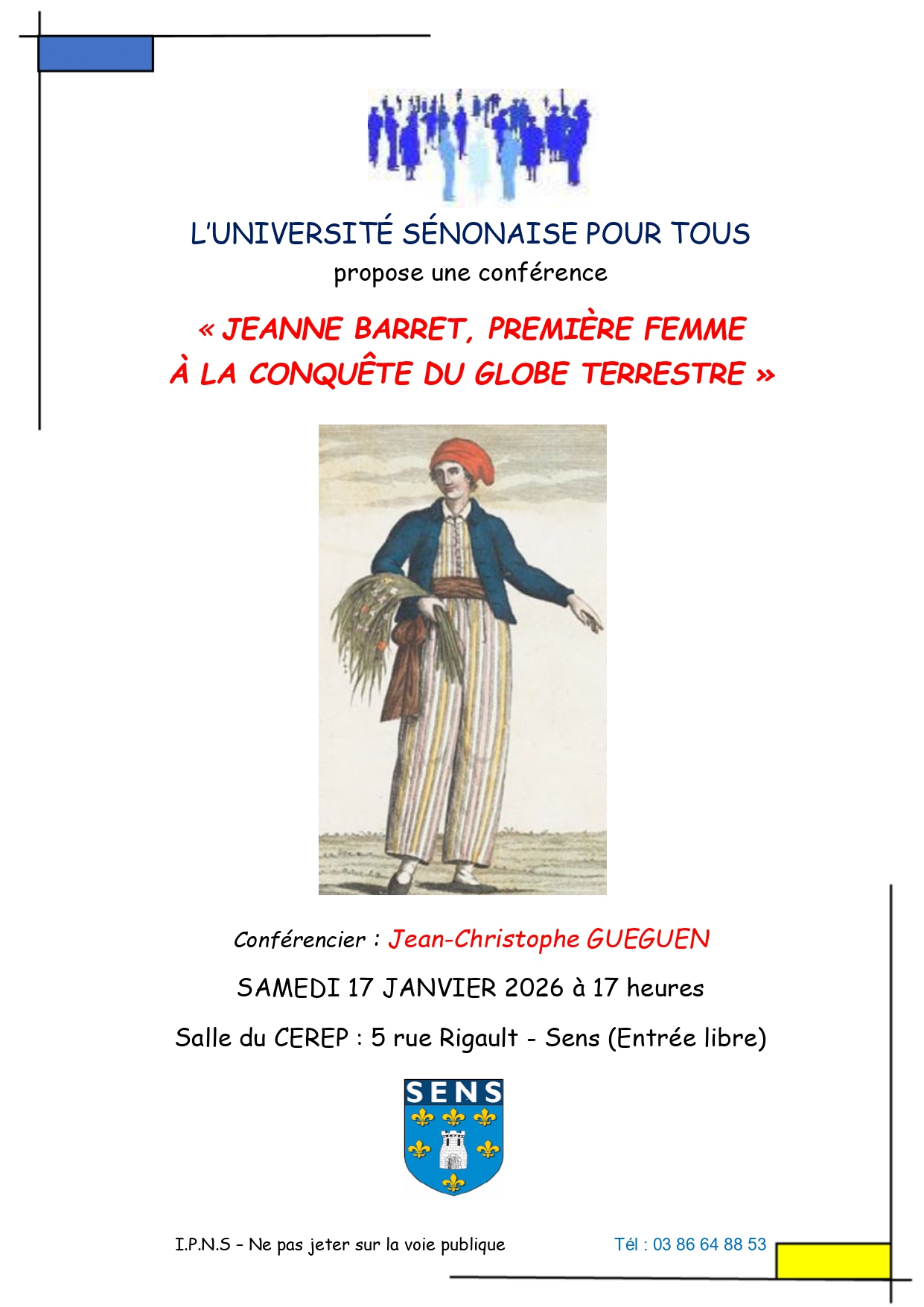 Jeanne Barret, première femme à la conquête du globe terrestre CEREP 5 rue Rigault 89100 SENS Voir mon itinéraire