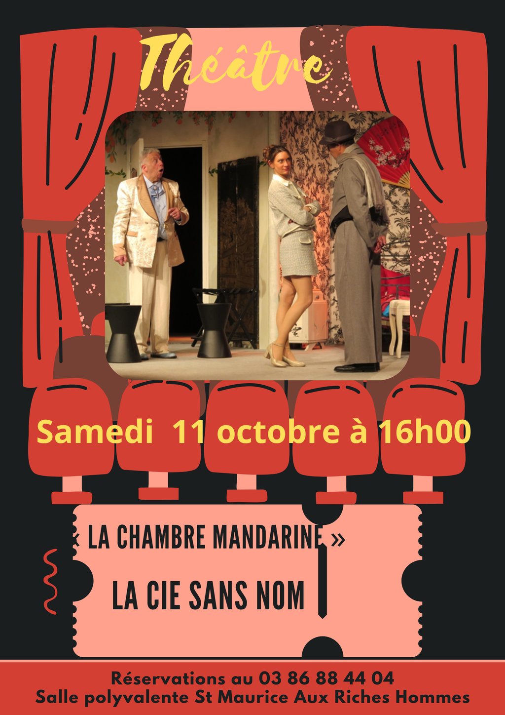 La Chambre Mandarine Salle polyvalnte 3 Place de l'École 89190 SAINT-MAURICE-AUX-RICHES-HOMMES Voir mon itinéraire