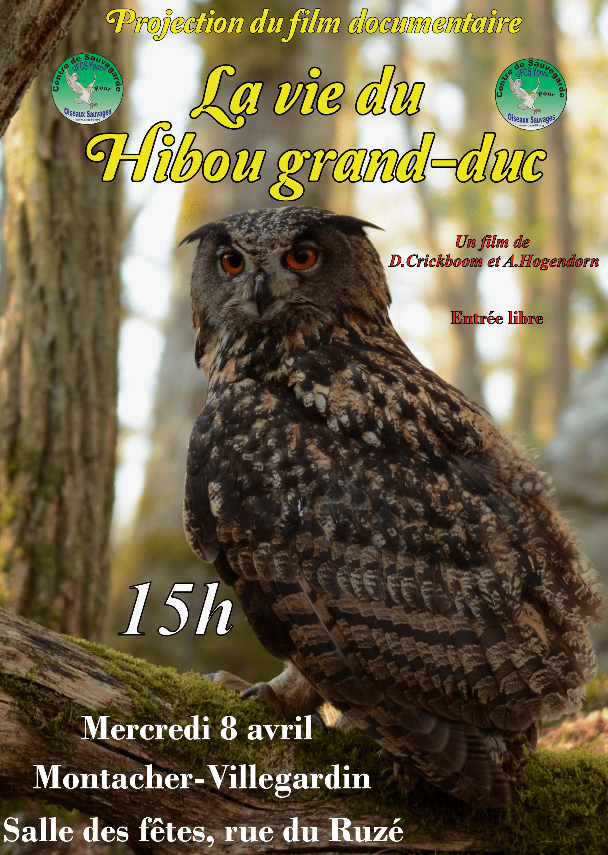 La vie du Hibou grand-duc Salle des fêtes Rue du Ruzé 89150 MONTACHER-VILLEGARDIN Voir mon itinéraire