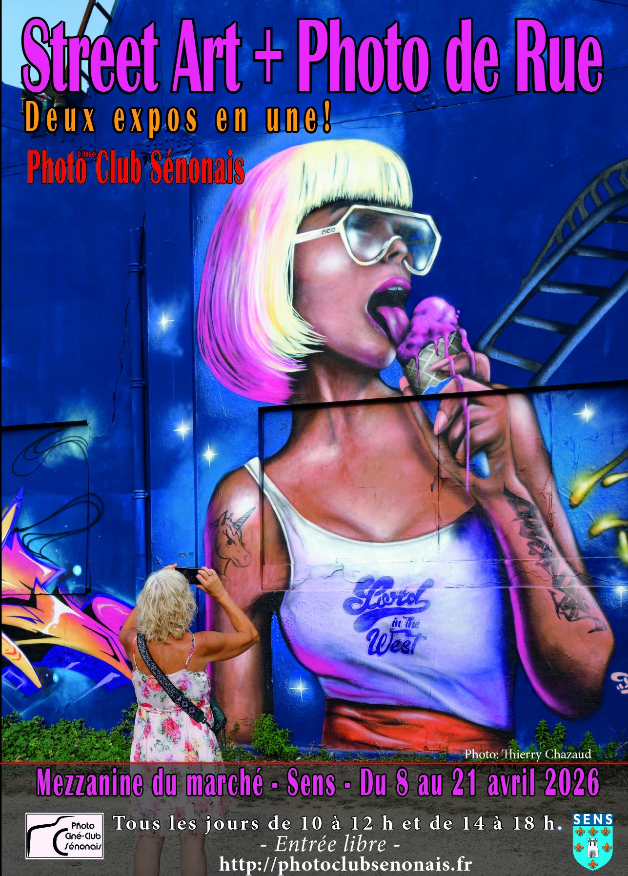 Le street art et la photo de rue, par le Photo Club Sénonais Mezzanine du marché couvert Place de la République 89100 SENS Voir mon itinéraire