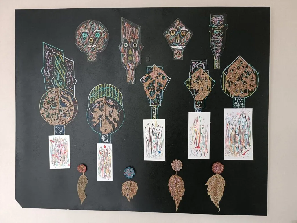 Mélange anarchique de formes et de couleurs, de textures et de substances, d'objets naturels ou manufacturés, Léo sillonne et plane dans ses sphères légères. Léo part dans les associations visuelles de silhouettes animées et colorées qui détachent l'observateur des lourdes réalités de ce monde. Léo part tout en souplesse irisée, dentelée, morcelée, dorée, orangée, plumetée, boutonnée, feuilletée, découpée pour se confondre en suspension avec ses créations.