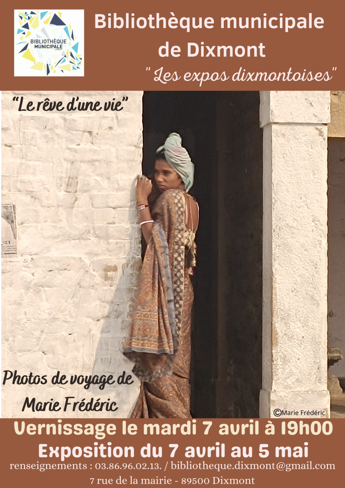 Les expos dixmontoises – Photos de voyage de Marie Frédéric, Le rêve d’une vie Bibliothèque municipale 7 Rue de la Mairie 89500 DIXMONT Voir mon itinéraire