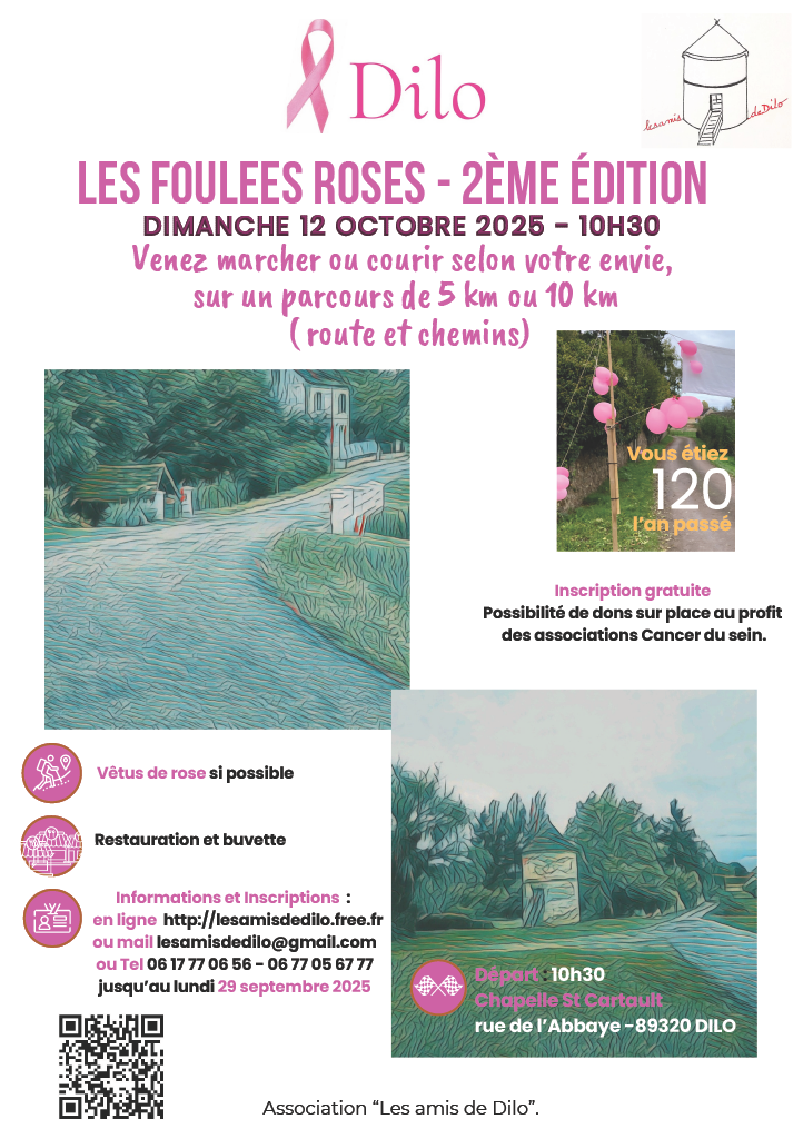 Les Foulées Roses – 2ème édition Chapelle Sainte Cartault 89320 ARCES-DILO Voir mon itinéraire