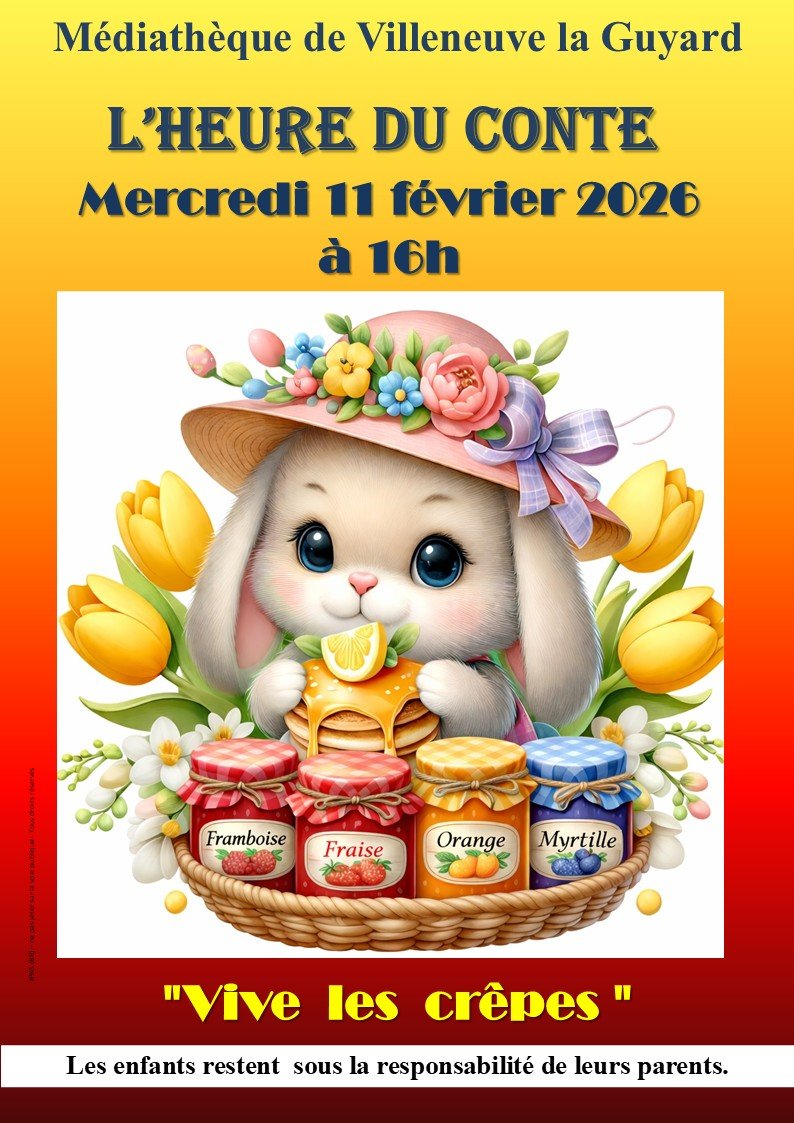 L’heure du conte Bibliothèque Jacques Millot 6110 Place de l'hôtel de ville 89340 VILLENEUVE-LA-GUYARD Voir mon itinéraire