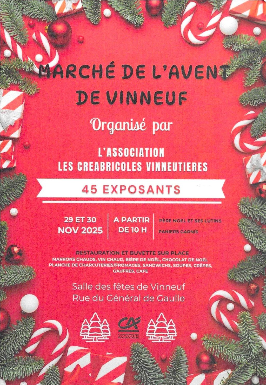 Marché de l'Avent de Vinneuf organisé par l'association Les Créabricoles Vinneutières avec 45 exposants.
