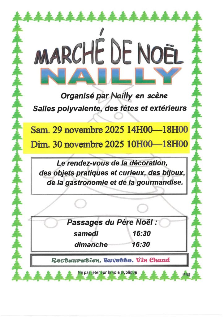 Marché de Noël / Nailly Salle polyvalente Rue de l'église 89100 NAILLY Voir mon itinéraire