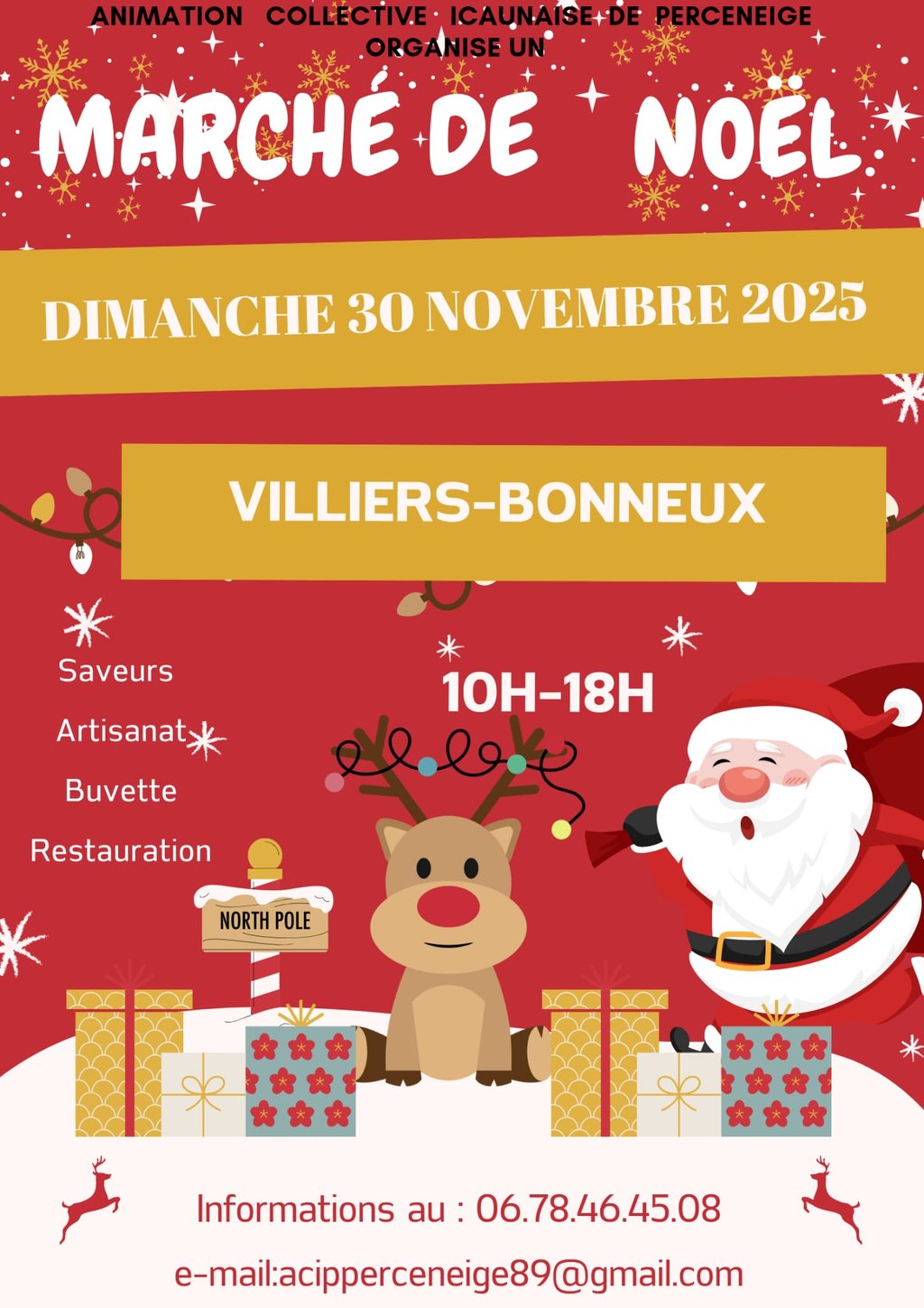 Animation Collective Icaunaise de Perceneige organise un marché de Noël avec au programme : saveurs, artisanat, buvette et restauration.