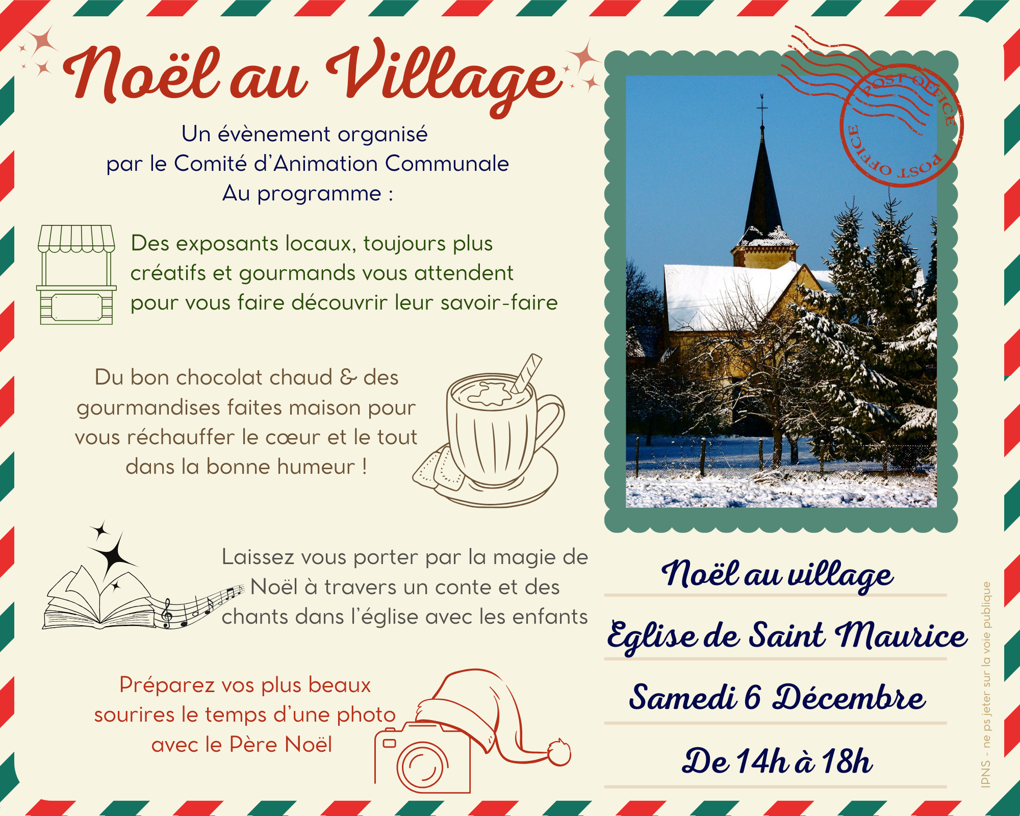 Pour sa 2ᵉ édition de "Noël au Village", le Comité d'Animation Communale vous invite à partager un moment féerique sur le parvis de l'église.