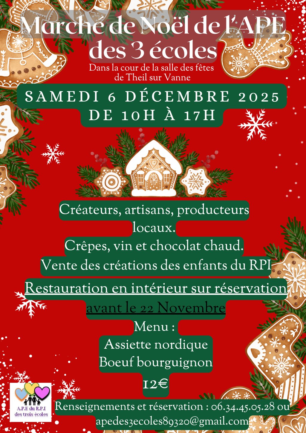 Marché de Noël / Theil-sur-Vanne Cour de la salle des fêtes Route du Miroir 89320 THEIL-SUR-VANNE Voir mon itinéraire
