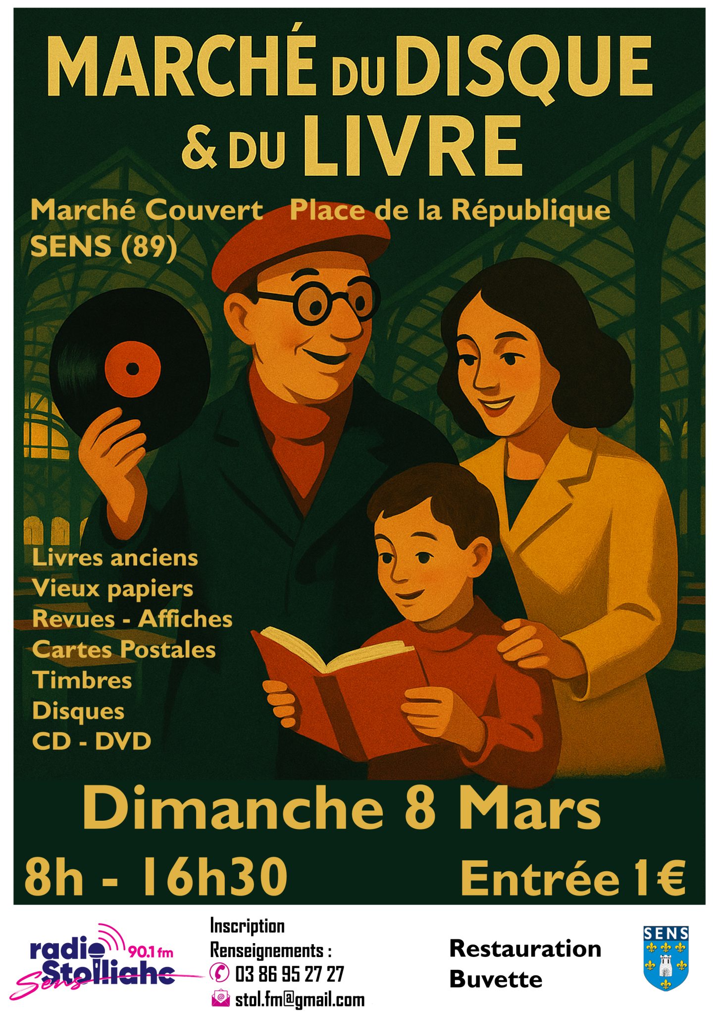 Marché du Livre ancien, du disque & vieux papiers Marché couvert Place de la République 89100 SENS Voir mon itinéraire
