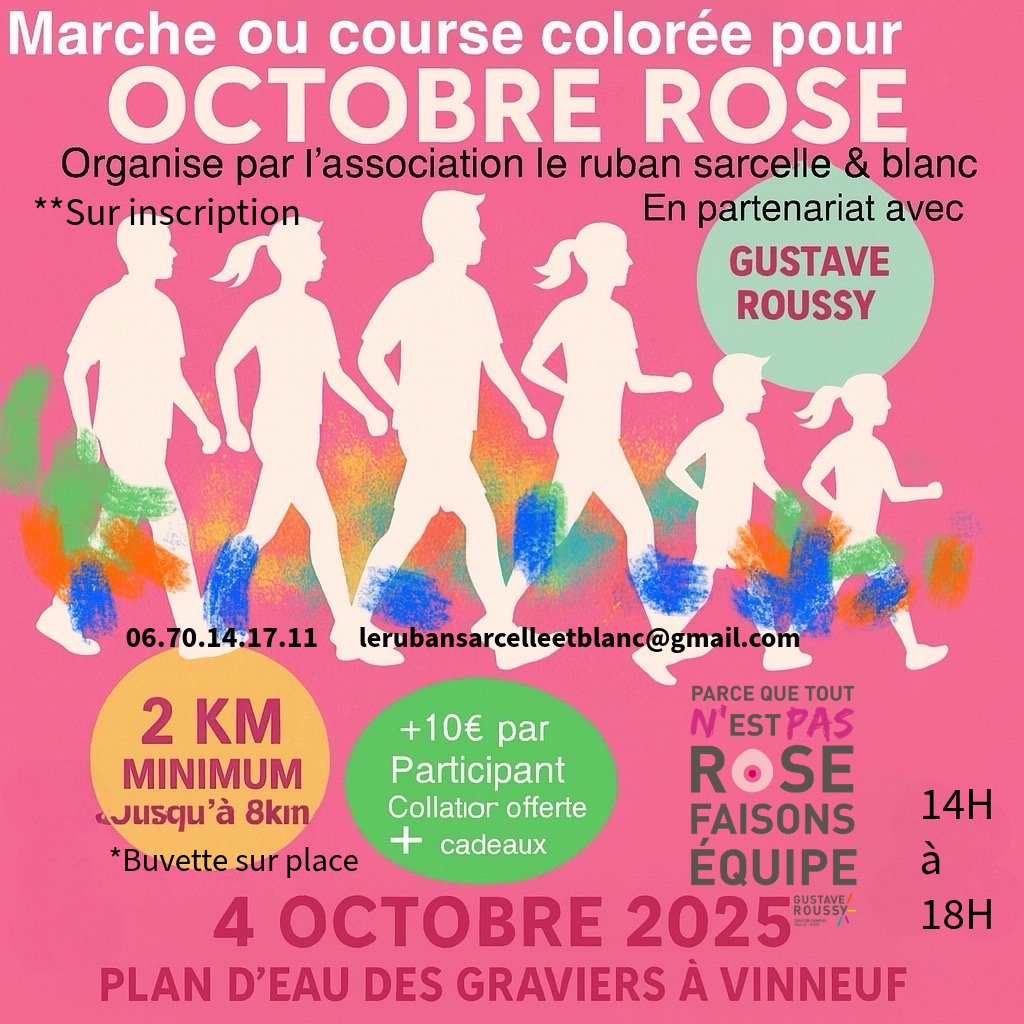 Marche ou course colorée pour Octobre Rose de l'association le Ruban Sarcelle et Blanc.