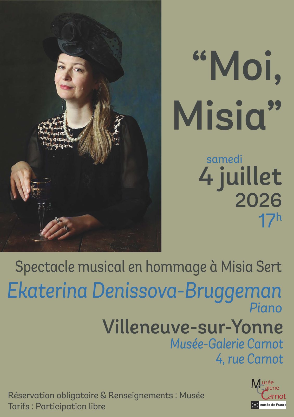 Moi Misia ! Spectacle musical en hommage à Misia Sert, Ekaterina Denissova-Bruggeman Musée-Galerie Carnot 4 Rue Carnot 89500 VILLENEUVE-SUR-YONNE Voir mon itinéraire