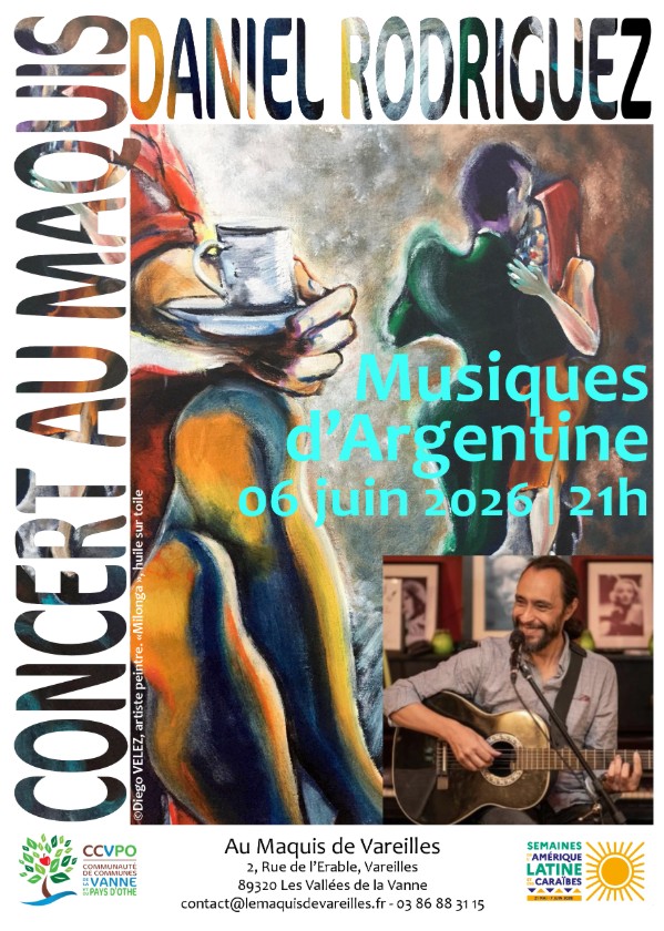 Embarquez pour un voyage musical avec Daniel Rodriguez lors d'un concert "Musiques d'Argentine" au Maquis de Vareilles, le samedi 6 juin à 21h. Une nouvelle occasion de plonger dans les rythmes envoûtants et les mélodies traditionnelles de l'Argentine, dans une ambiance conviviale et festive.