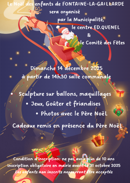Noël des enfants Salle communale 3 Bis Rue Gaston Corgibet 89100 FONTAINE-LA-GAILLARDE Voir mon itinéraire
