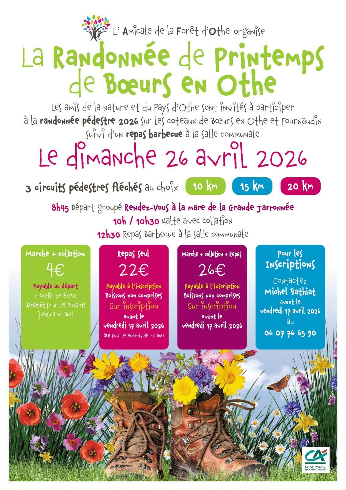 Les amis de la nature et du pays d'Othe sont invités à participer à la randonnée pédestre 2026 sur les coteaux de Bœurs-en-Othe suivi d'un barbecue à la salle communale.