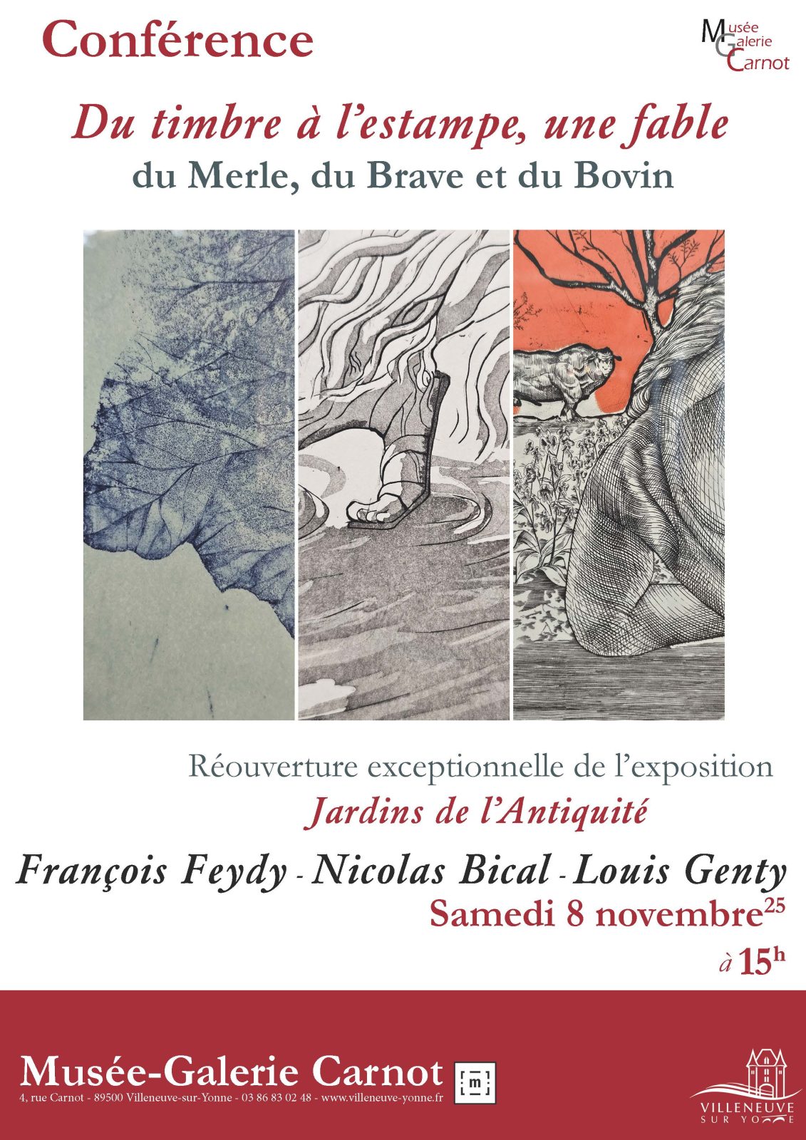 Rencontre avec les artistes François Feydy – Nicolas Bical – Louis Genty et vente Musée-Galerie Carnot 4 Rue Carnot 89500 VILLENEUVE-SUR-YONNE Voir mon itinéraire