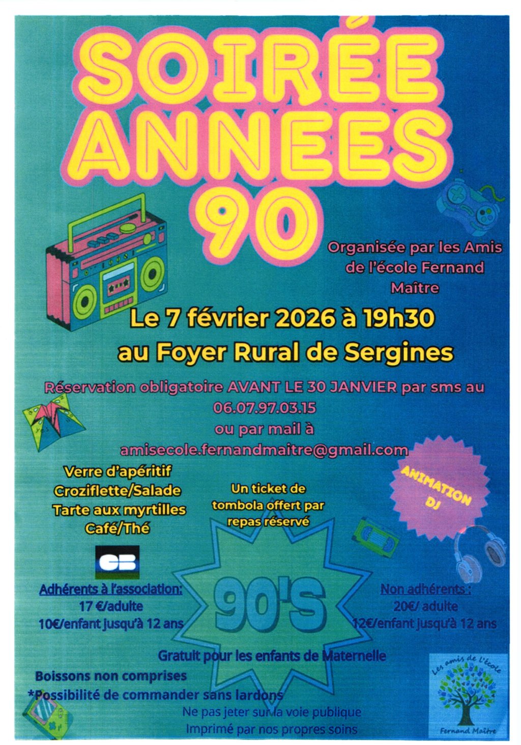 Soirée années 90 organisée par les Amis de l'école Fernand Maître.