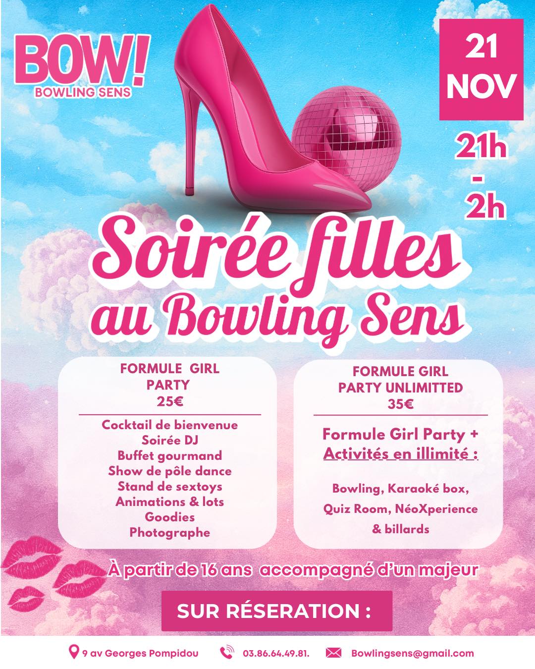 Le 21 novembre de 21h à 2h, le Bowling Sens t’accueille pour LA soirée la plus girly et fun de l’année