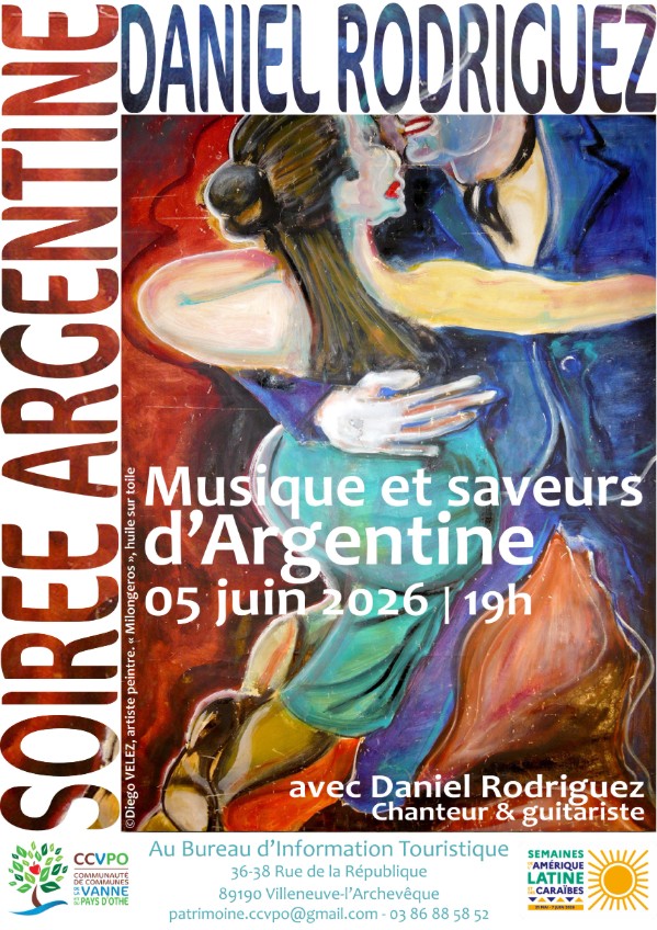 Soirée « Musique et saveurs d’Argentine » Bureau d'Information Touristique 36 Rue de la République 89190 VILLENEUVE-L'ARCHEVEQUE Voir mon itinéraire
