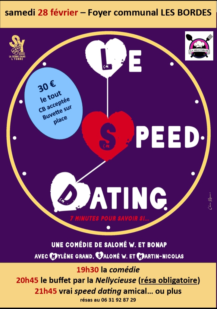 Théâtre « Le Speed Dating » Foyer communal 2 Route de Theil 89500 LES BORDES Voir mon itinéraire