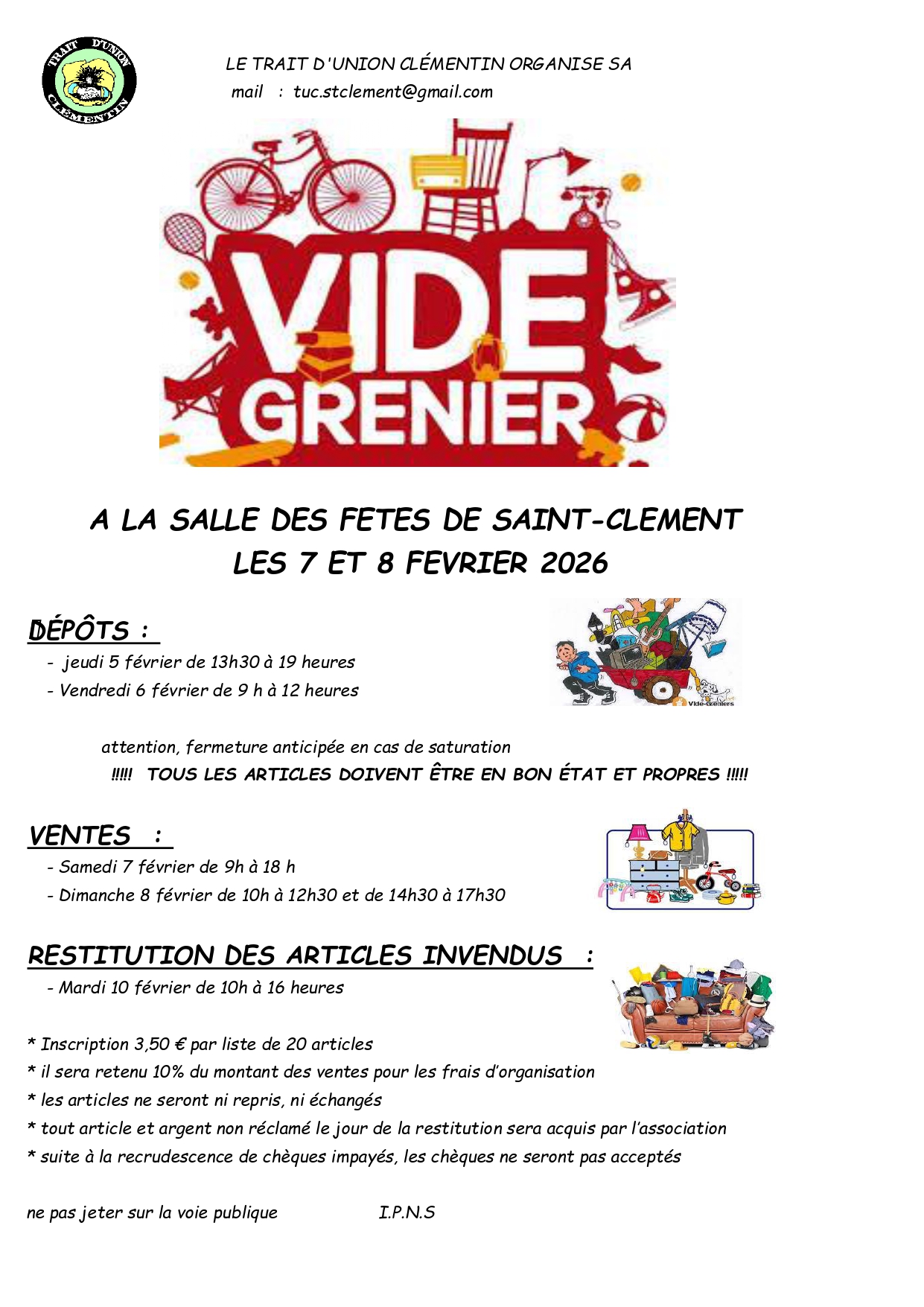 Le Trait d'Union Clémentin organise son vide-grenier.
